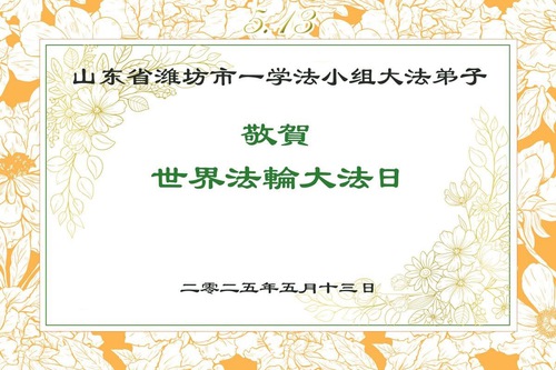 In this report, we present a selection of the 23 greetings sent from Falun Dafa practitioners in Weifang City, Shandong Province, China.