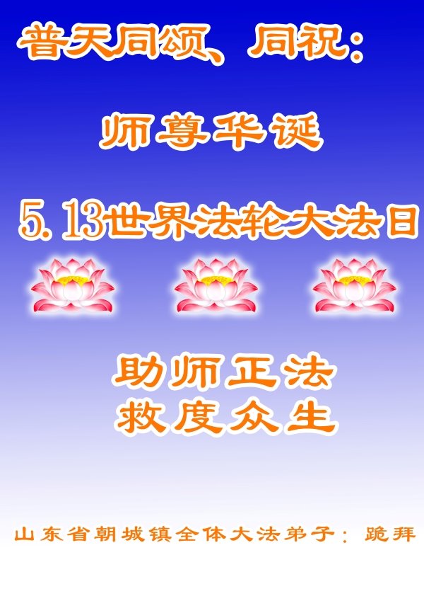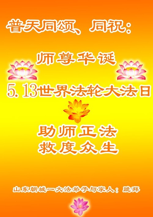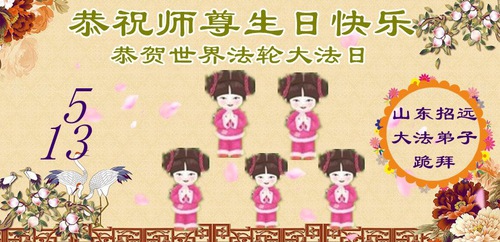 Falun Dafa Practitioners from Shandong Province Wish Revered Master a Happy Birthday and Celebrate World Falun Dafa Day!