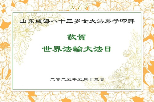 In this report, we present a selection of the 22 greetings sent from Falun Dafa practitioners in Shandong Province, China.