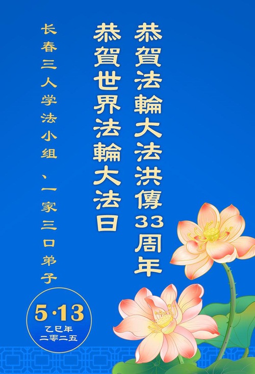 (Minghui.org) May 13, 2025, marks the 26th World Falun Dafa Day and the 33rd anniversary of the public introduction of Falun Dafa. The day is also the birthday of Master Li Hongzhi, the founder of Falun Dafa. Practitioners around the world are sending their heartfelt greetings to celebrate this grand occasion and honor revered Master on this special day.