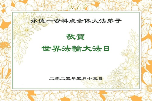 (Minghui.org) May 13, 2025, marks the 26th World Falun Dafa Day and the 33rd anniversary of the public introduction of Falun Dafa. The day is also the birthday of Master Li Hongzhi, the founder of Falun Dafa. Practitioners around the world are sending their heartfelt greetings to celebrate this grand occasion and honor revered Master on this special day.