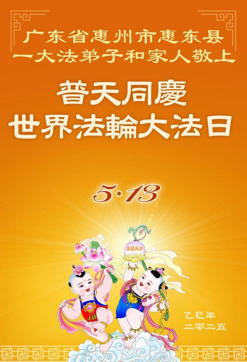 Falun Dafa Practitioners from Guangdong Province Wish Revered Master a Happy Birthday and Celebrate World Falun Dafa Day!