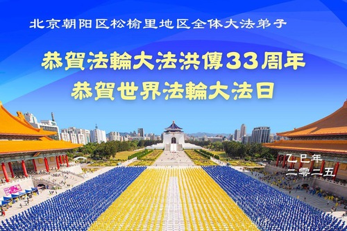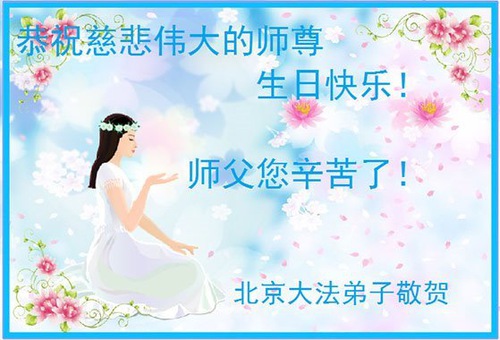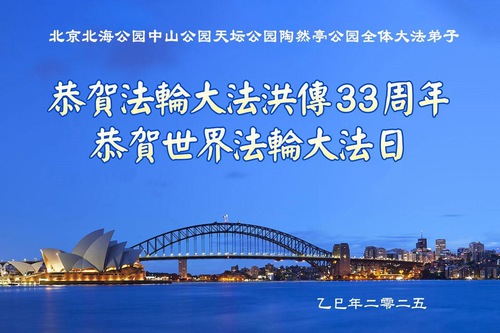 Falun Dafa Practitioners from Beijing Wish Revered Master a Happy Birthday and Celebrate World Falun Dafa Day!