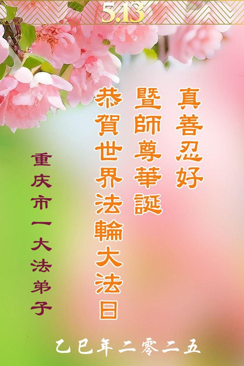 (Minghui.org) May 13, 2025, marks the 26th World Falun Dafa Day and the 33rd anniversary of the public introduction of Falun Dafa. The day is also the birthday of Master Li Hongzhi, the founder of Falun Dafa. Practitioners around the world are sending their heartfelt greetings to celebrate this grand occasion and honor revered Master on this special day.