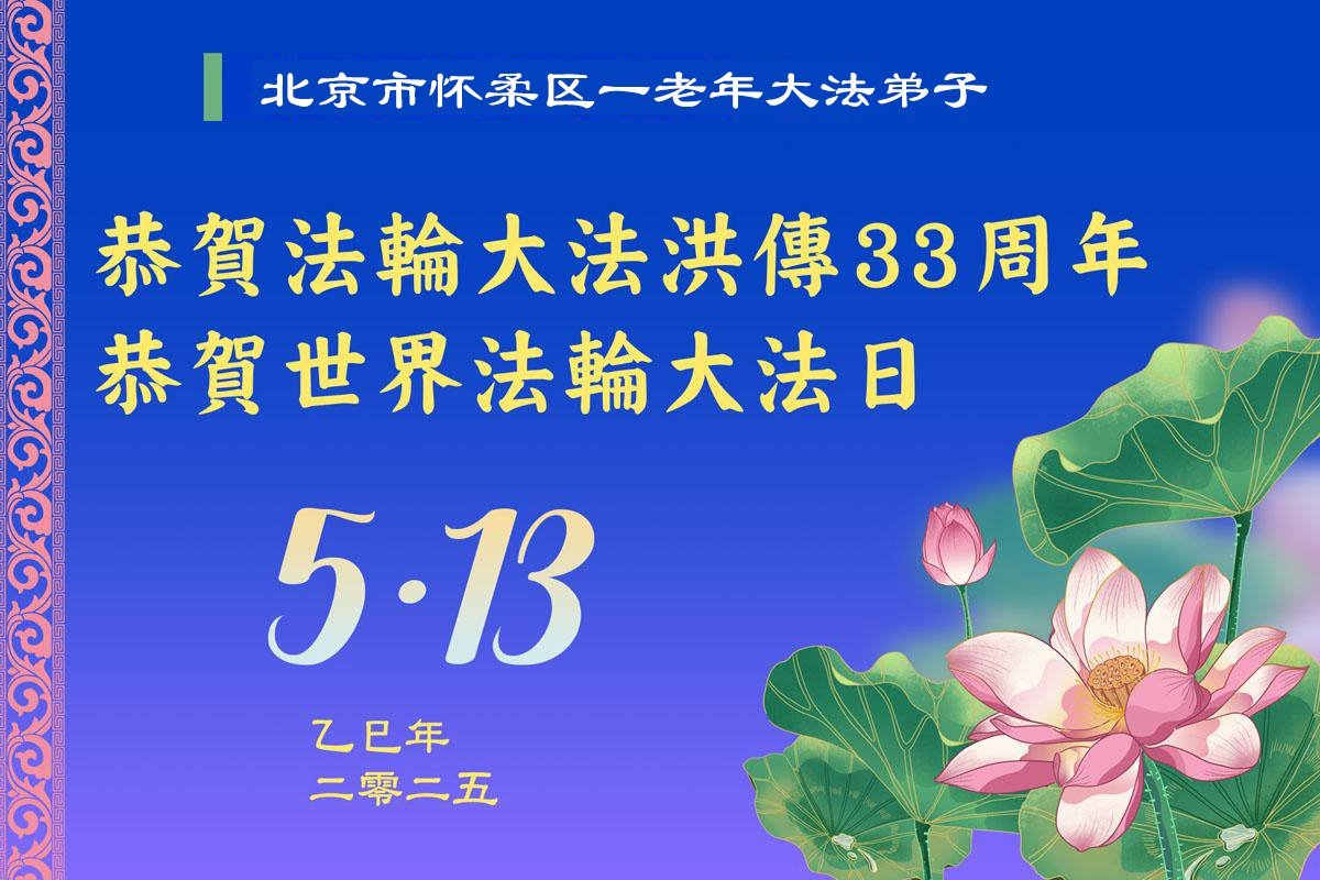 (Minghui.org) May 13, 2025, marks the 26th World Falun Dafa Day and the 33rd anniversary of the public introduction of Falun Dafa. The day is also the birthday of Master Li Hongzhi, the founder of Falun Dafa. Practitioners around the world are sending their heartfelt greetings to celebrate this grand occasion and honor revered Master on this special day.