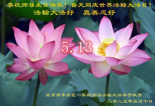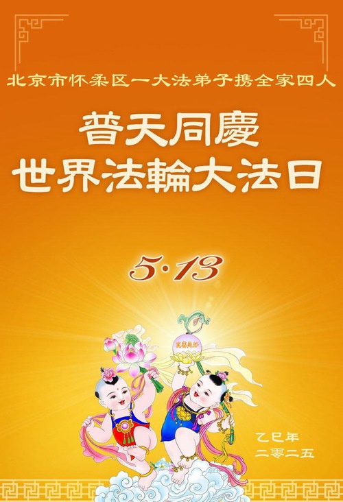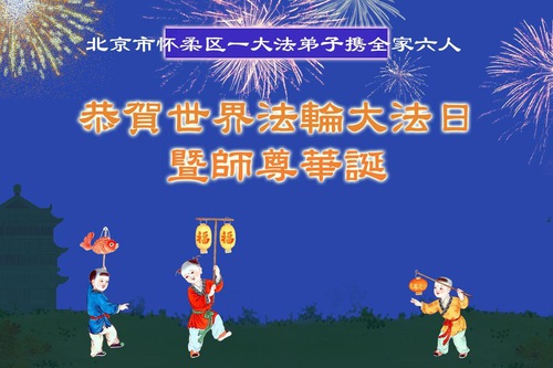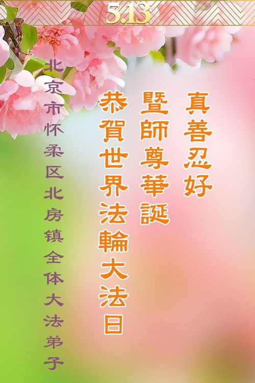 Falun Dafa Practitioners from Beijing Wish Revered Master a Happy Birthday and Celebrate World Falun Dafa Day!