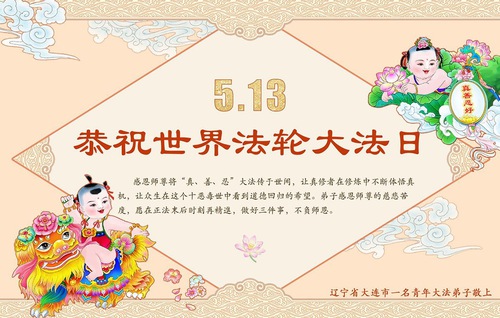 Falun Dafa Practitioners from Dalian City Wish Revered Master a Happy Birthday and Celebrate World Falun Dafa Day!