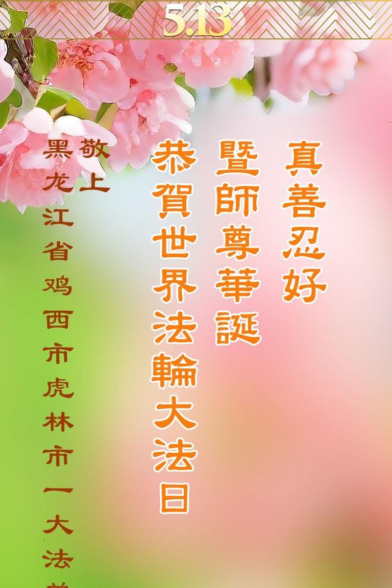 Falun Dafa Practitioners from Jixi City Wish Revered Master a Happy Birthday and Celebrate World Falun Dafa Day!