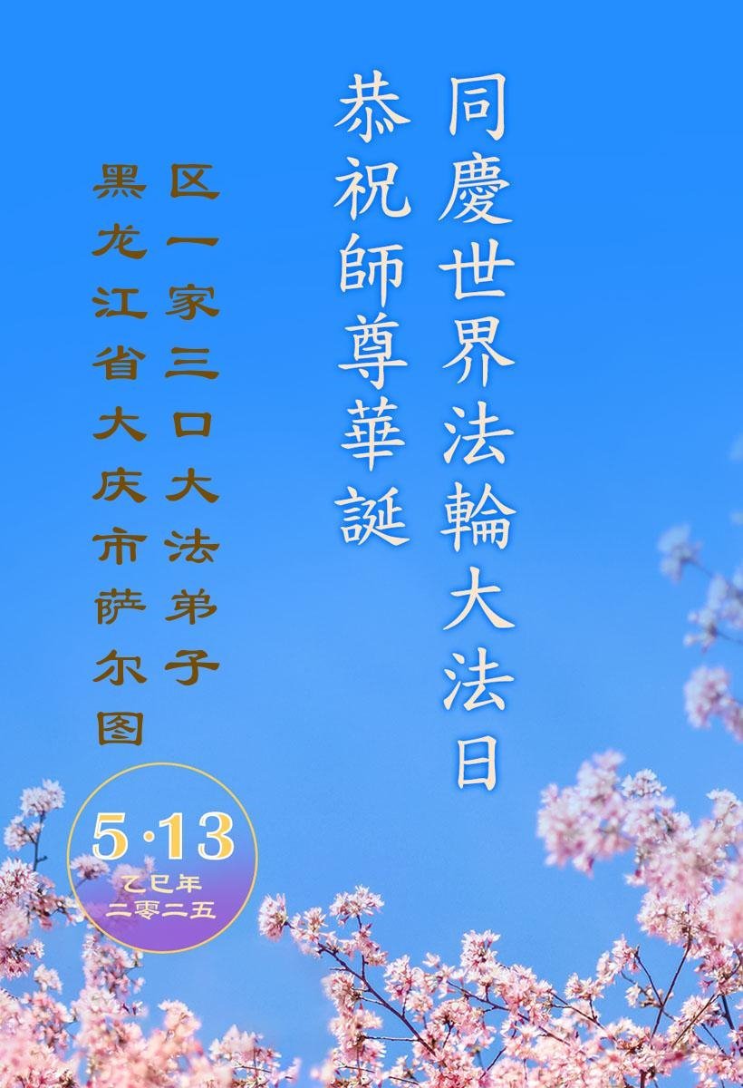 Falun Dafa Practitioners from Daqing City Wish Revered Master a Happy Birthday and Celebrate World Falun Dafa Day!