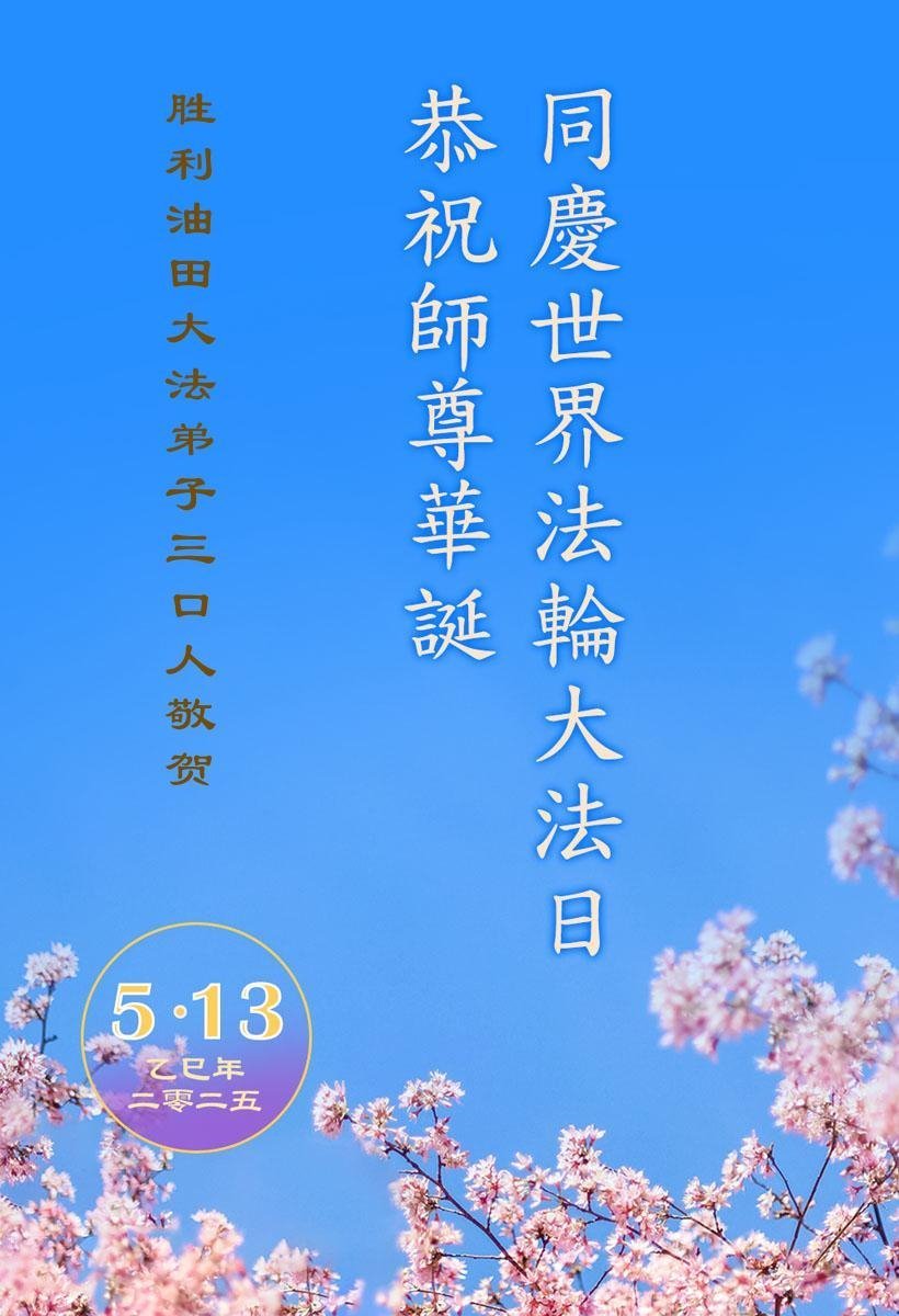 (Minghui.org) May 13, 2025, marks the 26th World Falun Dafa Day and the 33rd anniversary of the public introduction of Falun Dafa. The day is also the birthday of Master Li, the founder of Falun Dafa. Practitioners around the world send their heartfelt greetings to celebrate this grand occasion and honor revered Master on this special day.