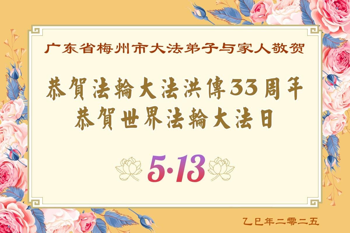 (Minghui.org) May 13, 2025, marks the 26th World Falun Dafa Day and the 33rd anniversary of the public introduction of Falun Dafa. The day is also the birthday of Master Li Hongzhi, the founder of Falun Dafa. Practitioners around the world send their heartfelt greetings to celebrate this grand occasion and honor revered Master on this special day.