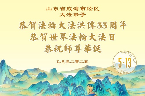 Falun Dafa Practitioners from Shandong Province Wish Revered Master a Happy Birthday and Celebrate World Falun Dafa Day!