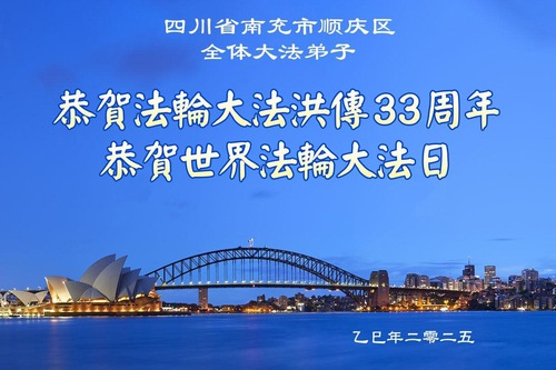Falun Dafa Practitioners in Sichuan Province Wish Revered Master a Happy Birthday and Celebrate World Falun Dafa Day!