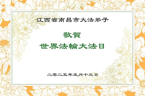 Falun Dafa Practitioners in Jiangxi Province Wish Revered Master a Happy Birthday and Celebrate World Falun Dafa Day!