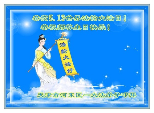 Falun Dafa Practitioners from Tianjin Wish Revered Master a Happy Birthday and Celebrate World Falun Dafa Day!