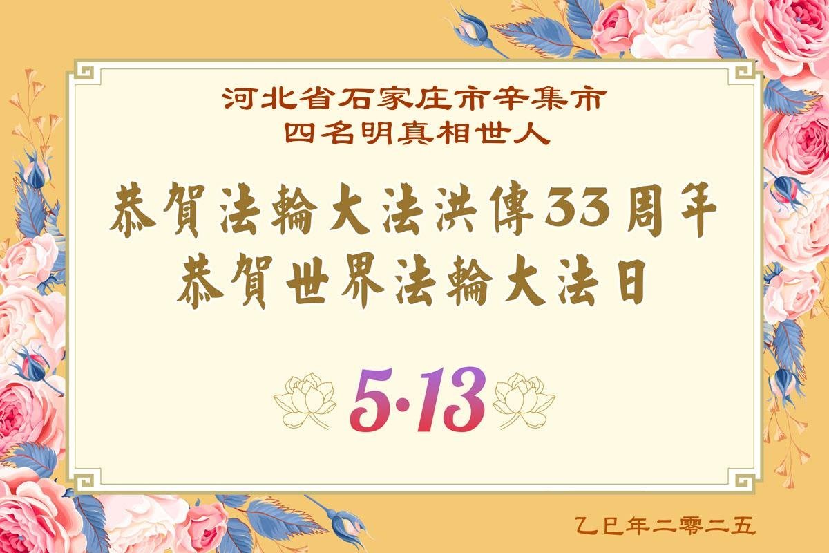 Falun Dafa Practitioners from Shijiazhuang City Wish Revered Master a Happy Birthday and Celebrate World Falun Dafa Day!