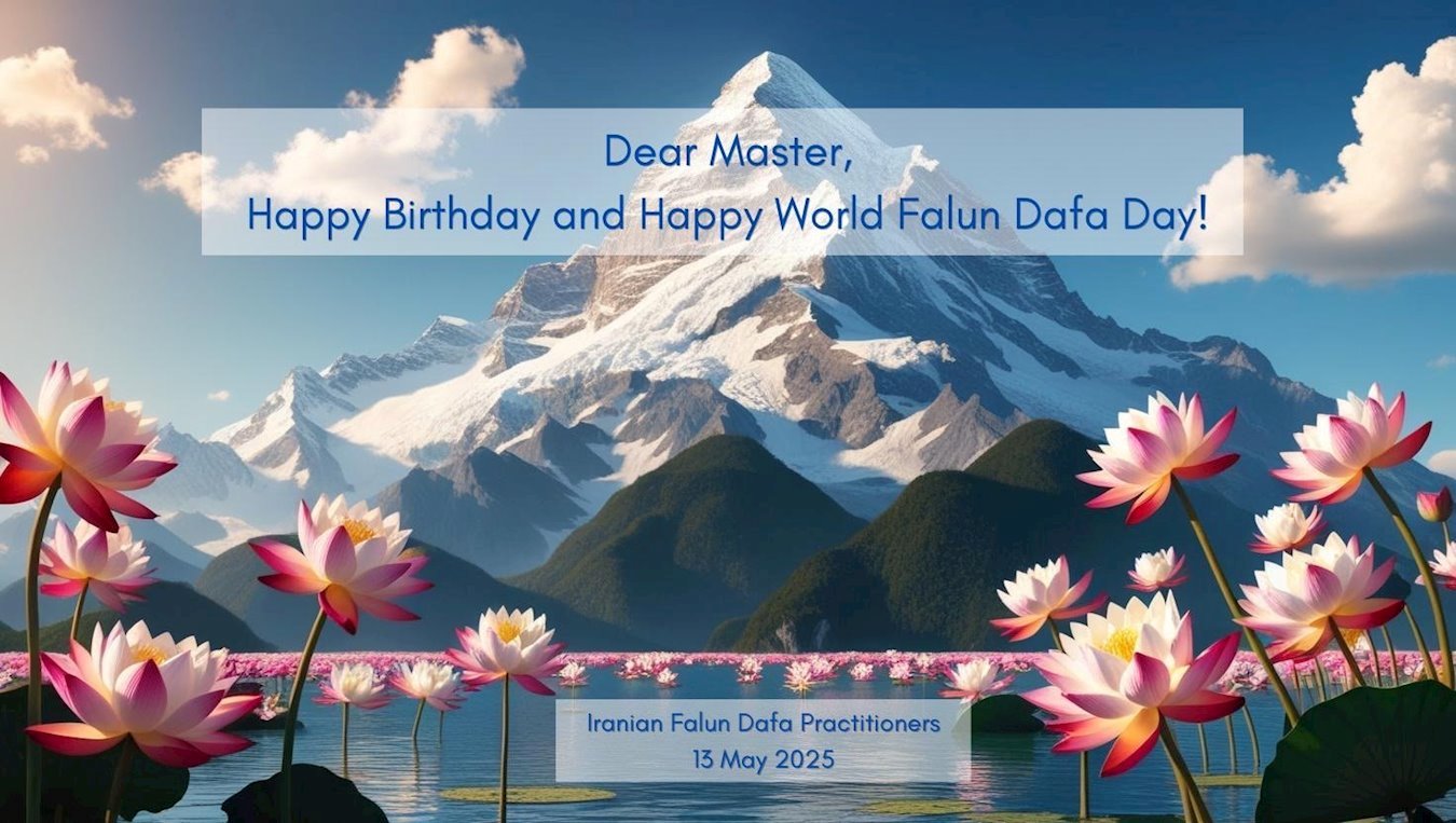 Falun Dafa Practitioners in Iran Respectfully Wish Benevolent Great Master a Happy Birthday and Celebrate World Falun Dafa Day!