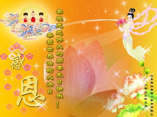 Falun Dafa Practitioners in Qingdao City Wish Revered Master a Happy Birthday and Celebrate World Falun Dafa Day!