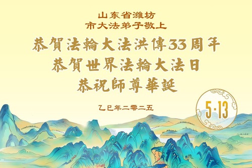 Falun Dafa Practitioners in Weifang City Wish Revered Master a Happy Birthday and Celebrate World Falun Dafa Day!