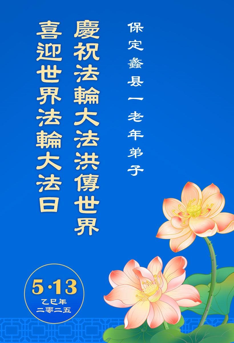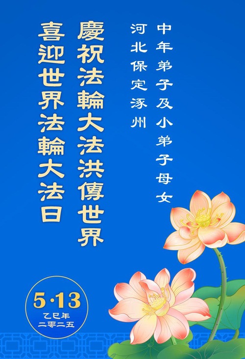 Falun Dafa Practitioners in Baoding City Wish Revered Master a Happy Birthday and Celebrate World Falun Dafa Day!