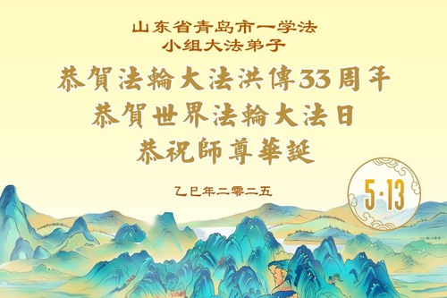 Falun Dafa Practitioners in Qingdao City Wish Revered Master a Happy Birthday and Celebrate World Falun Dafa Day!