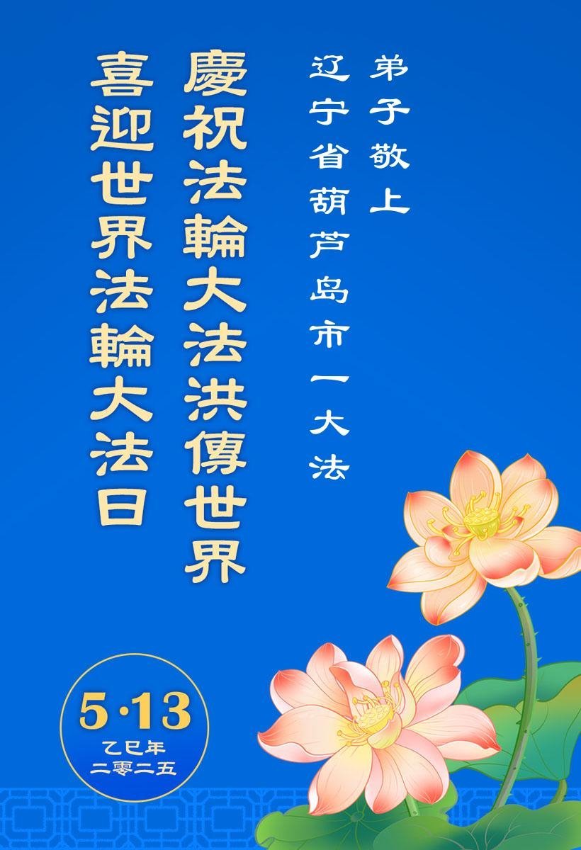 Falun Dafa Practitioners in Huludao City Wish Revered Master a Happy Birthday and Celebrate World Falun Dafa Day!
