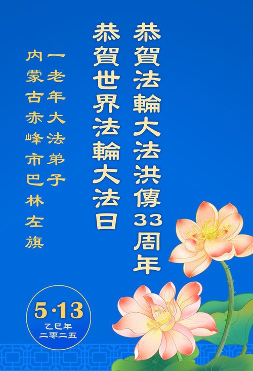 (Minghui.org) May 13, 2025, marks the 26th World Falun Dafa Day and the 33rd anniversary of the public introduction of Falun Dafa. The day is also the birthday of Master Li Hongzhi, the founder of Falun Dafa. Practitioners around the world convey their heartfelt greetings to celebrate this grand occasion and honor revered Master on this special day.