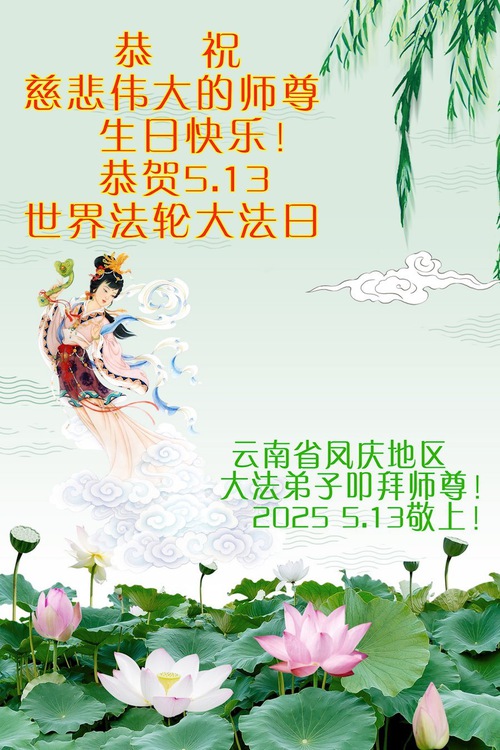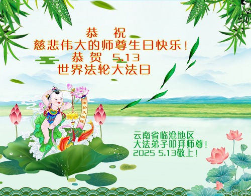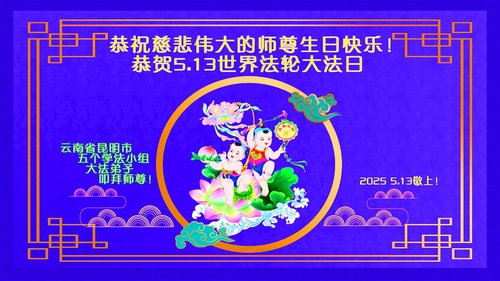 (Minghui.org) May 13, 2025, marks the 26th World Falun Dafa Day and the 33rd anniversary of the public introduction of Falun Dafa. The day is also the birthday of Master Li Hongzhi, the founder of Falun Dafa. Practitioners around the world convey their heartfelt greetings to celebrate this grand occasion and honor revered Master on this special day.
