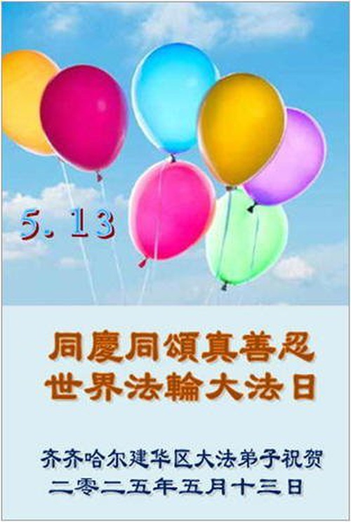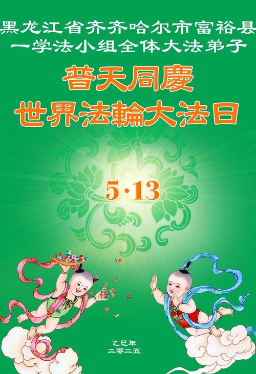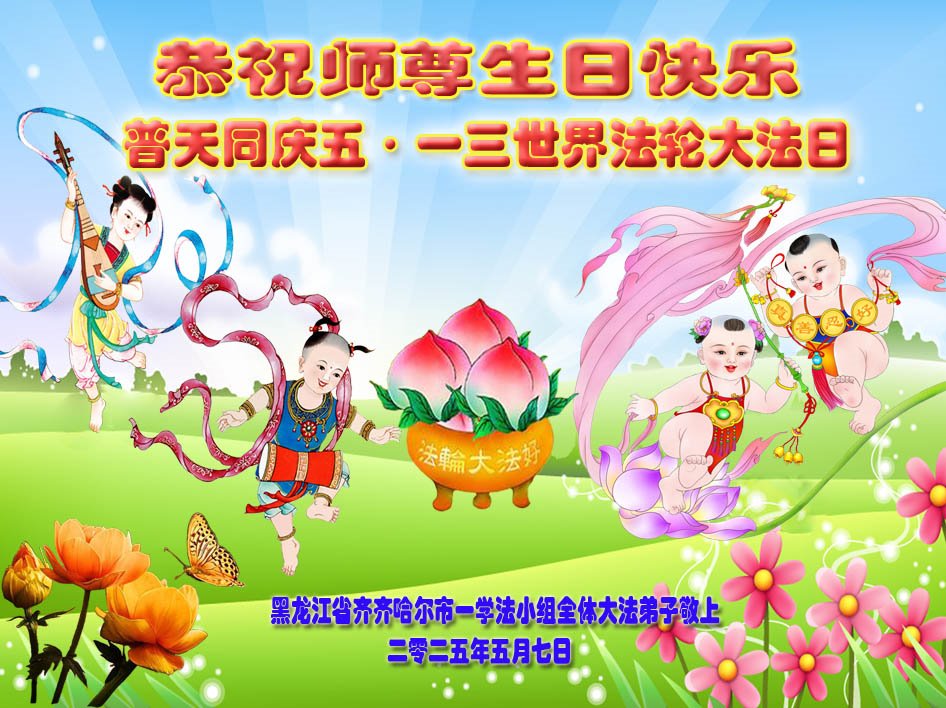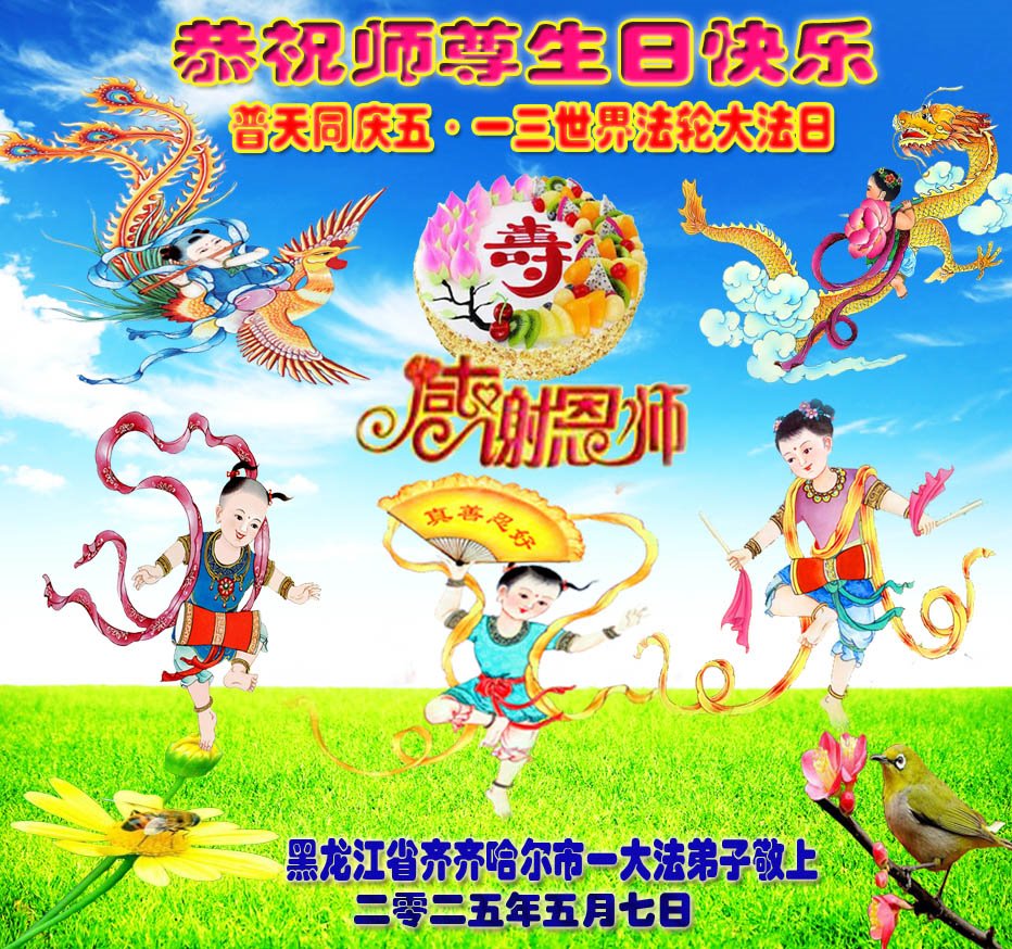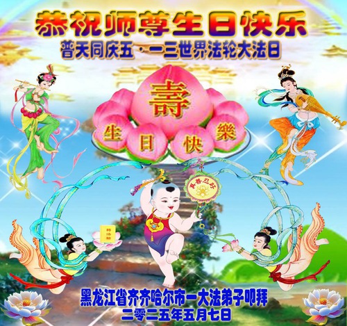 Falun Dafa Practitioners in Qiqihar City Wish Revered Master a Happy Birthday and Celebrate World Falun Dafa Day!