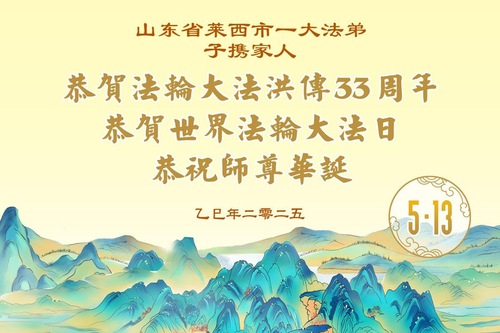 (Minghui.org) May 13, 2025, marks the 26th World Falun Dafa Day and the 33rd anniversary of the public introduction of Falun Dafa. The day is also the birthday of Master Li Hongzhi, the founder of Falun Dafa. Practitioners around the world send their heartfelt greetings to celebrate this grand occasion and honor revered Master on this special day.