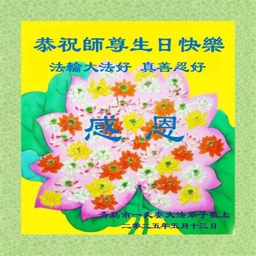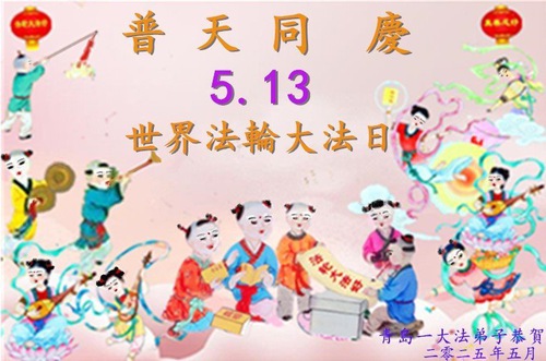 Falun Dafa Practitioners in Qingdao City Wish Revered Master a Happy Birthday and Celebrate World Falun Dafa Day!