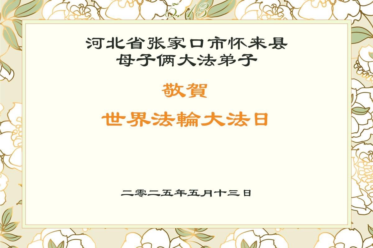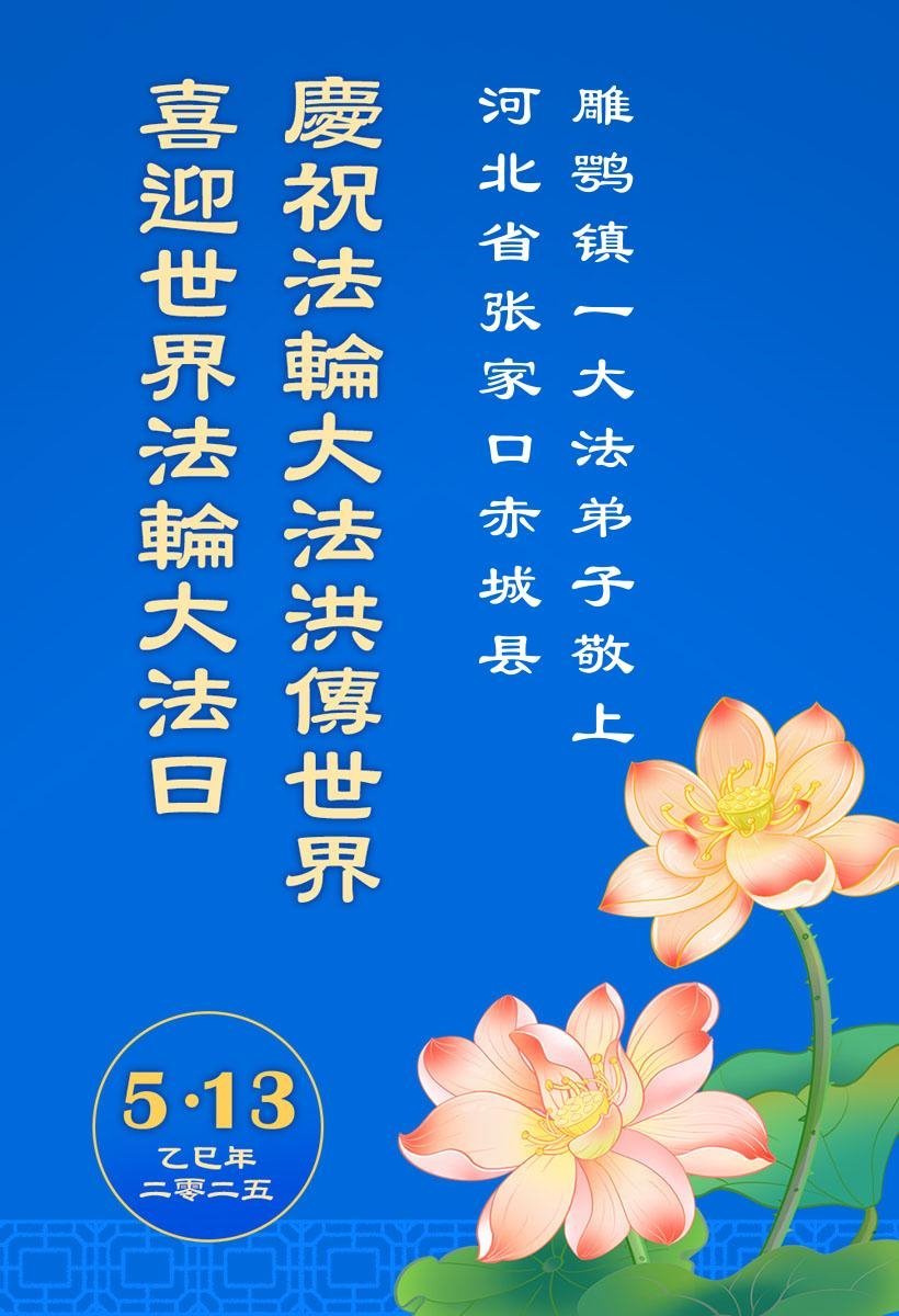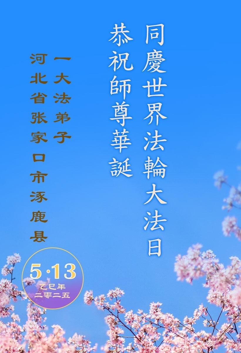 Falun Dafa Practitioners in Zhangjiakou City Wish Revered Master a Happy Birthday and Celebrate World Falun Dafa Day!