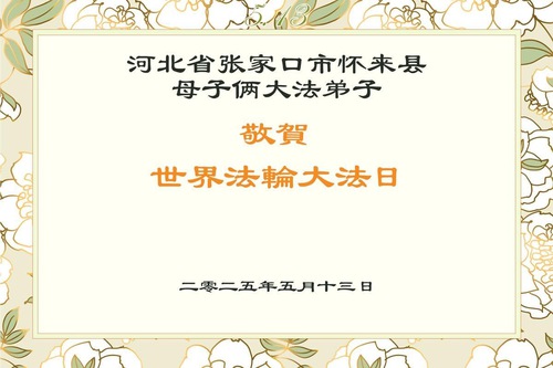 In this report, we present a selection of the 19 greetings sent from Falun Dafa practitioners in Zhangjiakou City, Hebei Province, China.