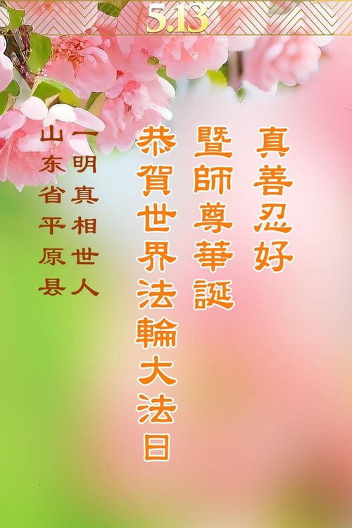 (Minghui.org) May 13, 2025, marks the 26th World Falun Dafa Day and the 33rd anniversary of the public introduction of Falun Dafa. The day is also the birthday of Master Li, the founder of Falun Dafa. Practitioners around the world convey their heartfelt greetings to celebrate this grand occasion and honor revered Master on this special day.