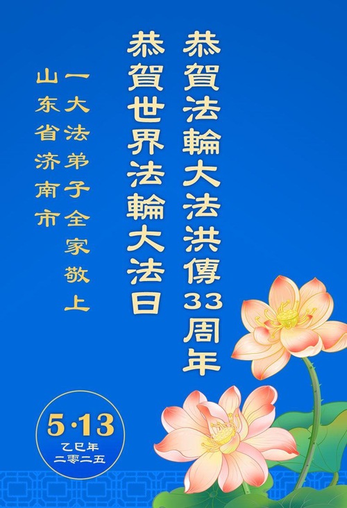 (Minghui.org) May 13, 2025, marks the 26th World Falun Dafa Day and the 33rd anniversary of the public introduction of Falun Dafa. The day is also the birthday of Master Li, the founder of Falun Dafa. Practitioners around the world send their heartfelt greetings to celebrate this grand occasion and honor revered Master on this special day.