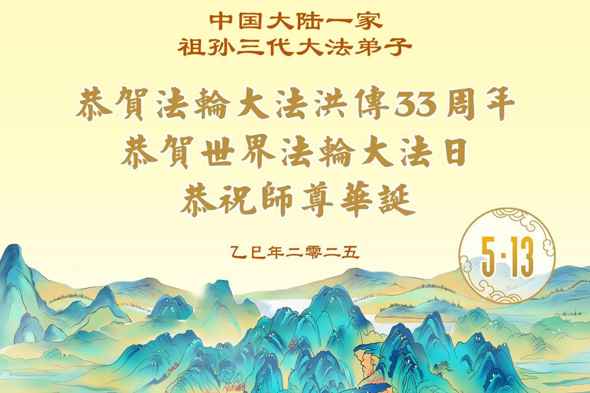 (Minghui.org) May 13, 2025, marks the 26th World Falun Dafa Day and the 33rd anniversary of the public introduction of Falun Dafa. The day is also the birthday of Master Li, the founder of Falun Dafa. Practitioners around the world send their heartfelt greetings to celebrate this grand occasion and honor revered Master on this special day.