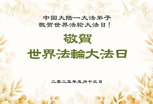 (Minghui.org) May 13, 2025, marks the 26th World Falun Dafa Day and the 33rd anniversary of the public introduction of Falun Dafa. The day is also the birthday of Master Li, the founder of Falun Dafa. Practitioners around the world convey their heartfelt greetings to celebrate this grand occasion and honor revered Master on this special day.