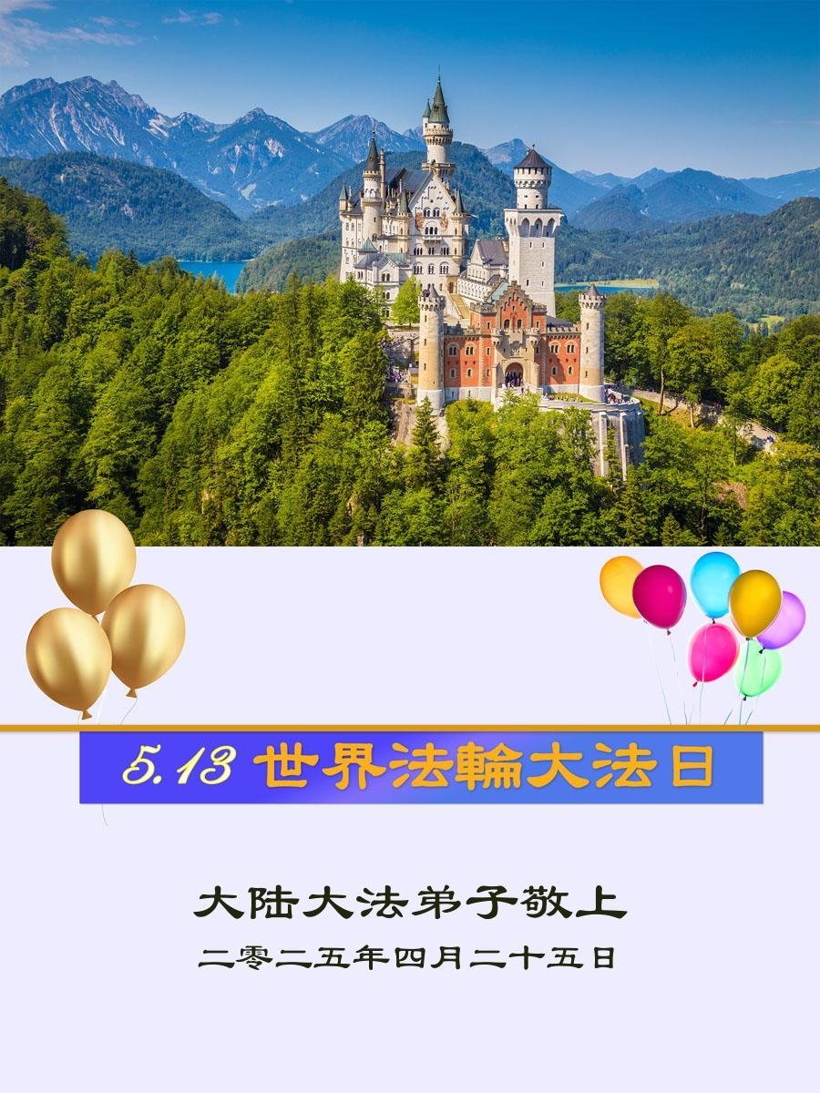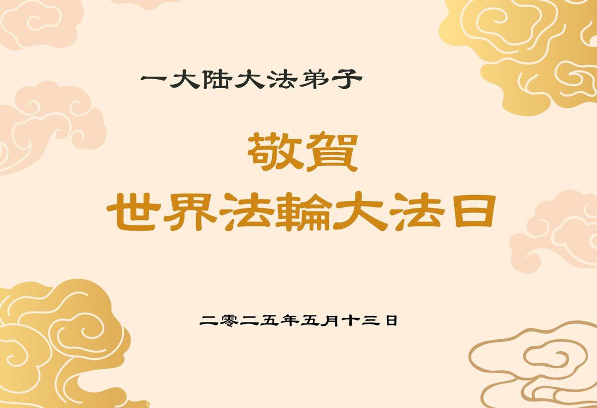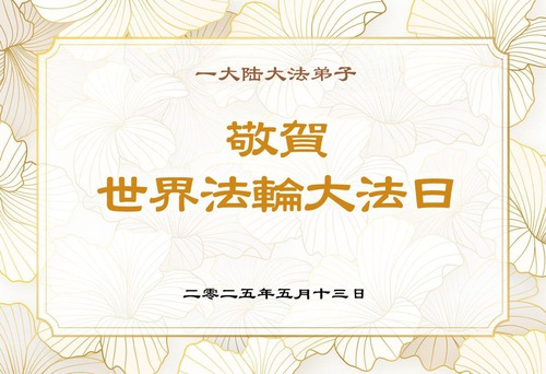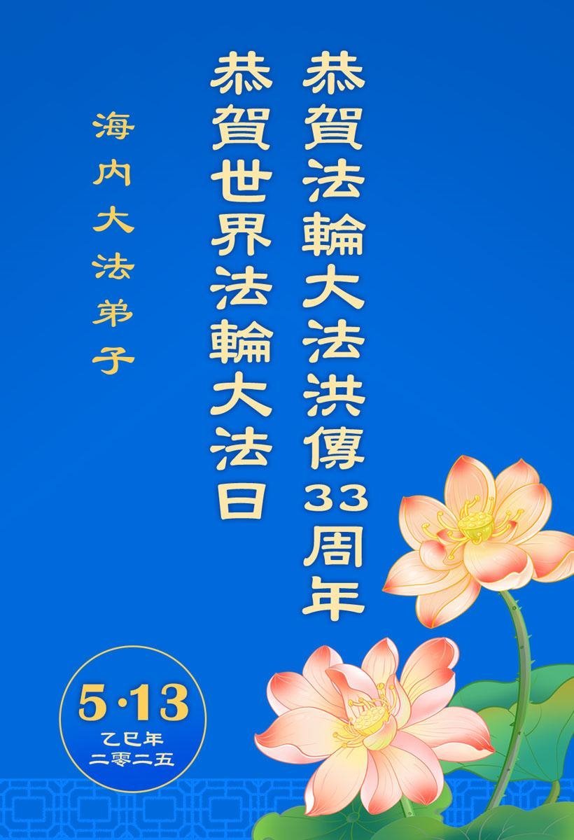 (Minghui.org) May 13, 2025, marks the 26th World Falun Dafa Day and the 33rd anniversary of the public introduction of Falun Dafa. The day is also the birthday of Master Li, the founder of Falun Dafa. Practitioners around the world convey their heartfelt greetings to celebrate this grand occasion and honor revered Master on this special day.