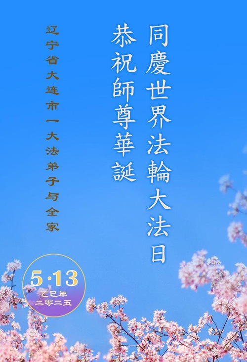 Falun Dafa Practitioners from Dalian City Wish Revered Master a Happy Birthday and Celebrate World Falun Dafa Day!