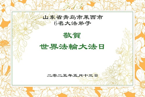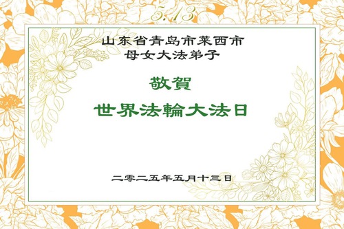 In this report, we present a selection of the 18 greetings sent from Falun Dafa practitioners in Qingdao City, Shandong Province, China.