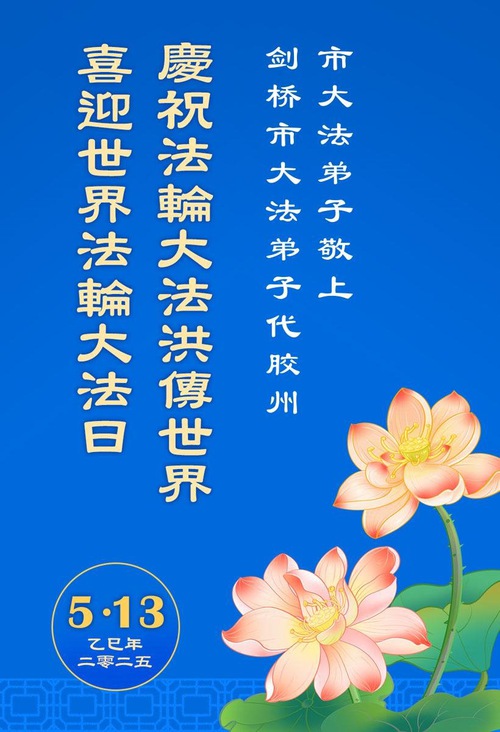 (Minghui.org) May 13, 2025, marks the 26th World Falun Dafa Day and the 33rd anniversary of the public introduction of Falun Dafa. The day is also the birthday of Master Li, the founder of Falun Dafa. Practitioners around the world are sending their heartfelt greetings to celebrate this grand occasion and honor revered Master on this special day.