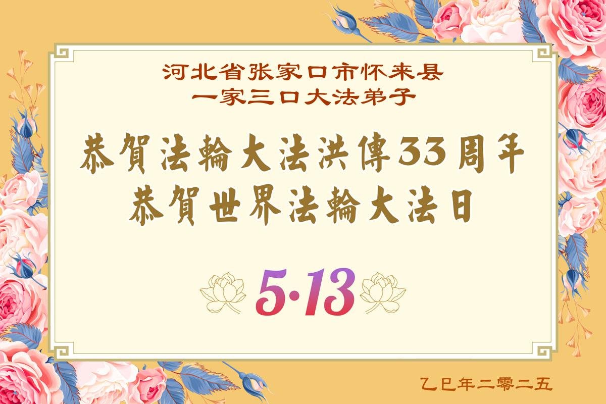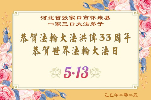 Falun Dafa Practitioners from Zhangjiakou City Wish Revered Master a Happy Birthday and Celebrate World Falun Dafa Day!