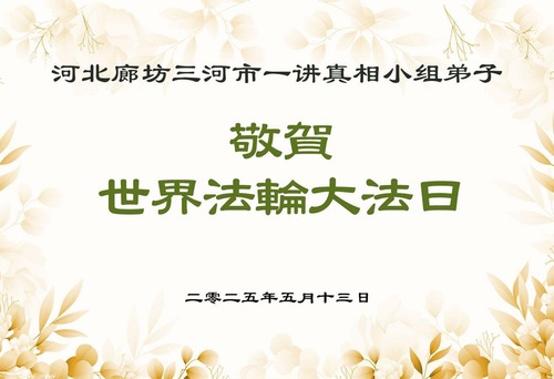 Falun Dafa Practitioners from Langfang City Wish Revered Master a Happy Birthday and Celebrate World Falun Dafa Day!