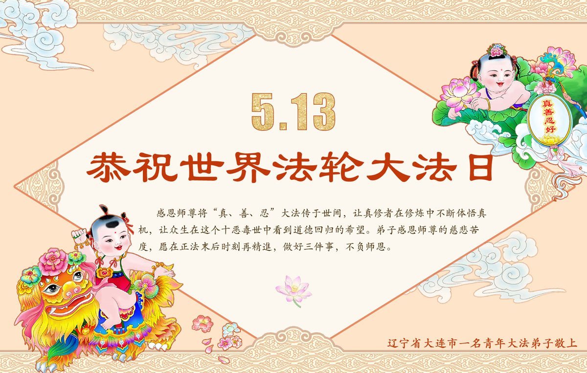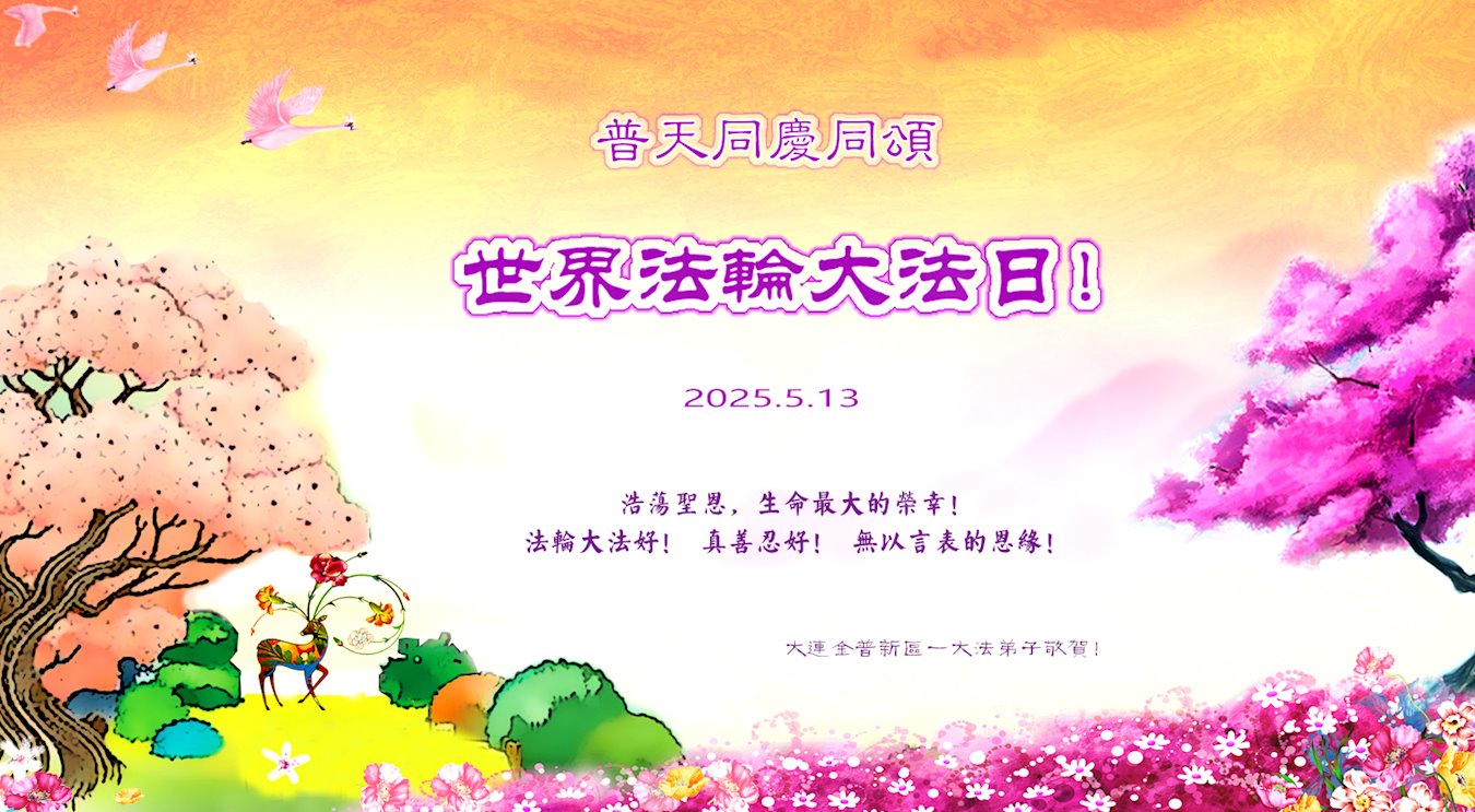 (Minghui.org) May 13, 2025, marks the 26th World Falun Dafa Day and the 33rd anniversary of the public introduction of Falun Dafa. The day is also the birthday of Master Li, the founder of Falun Dafa. Practitioners around the world are sending their heartfelt greetings to celebrate this grand occasion and honor revered Master on this special day.
