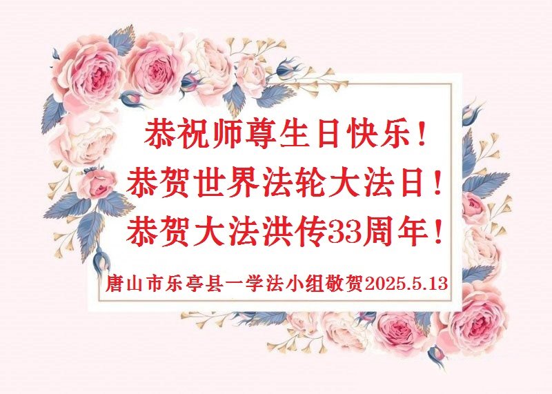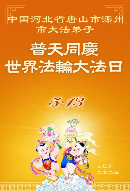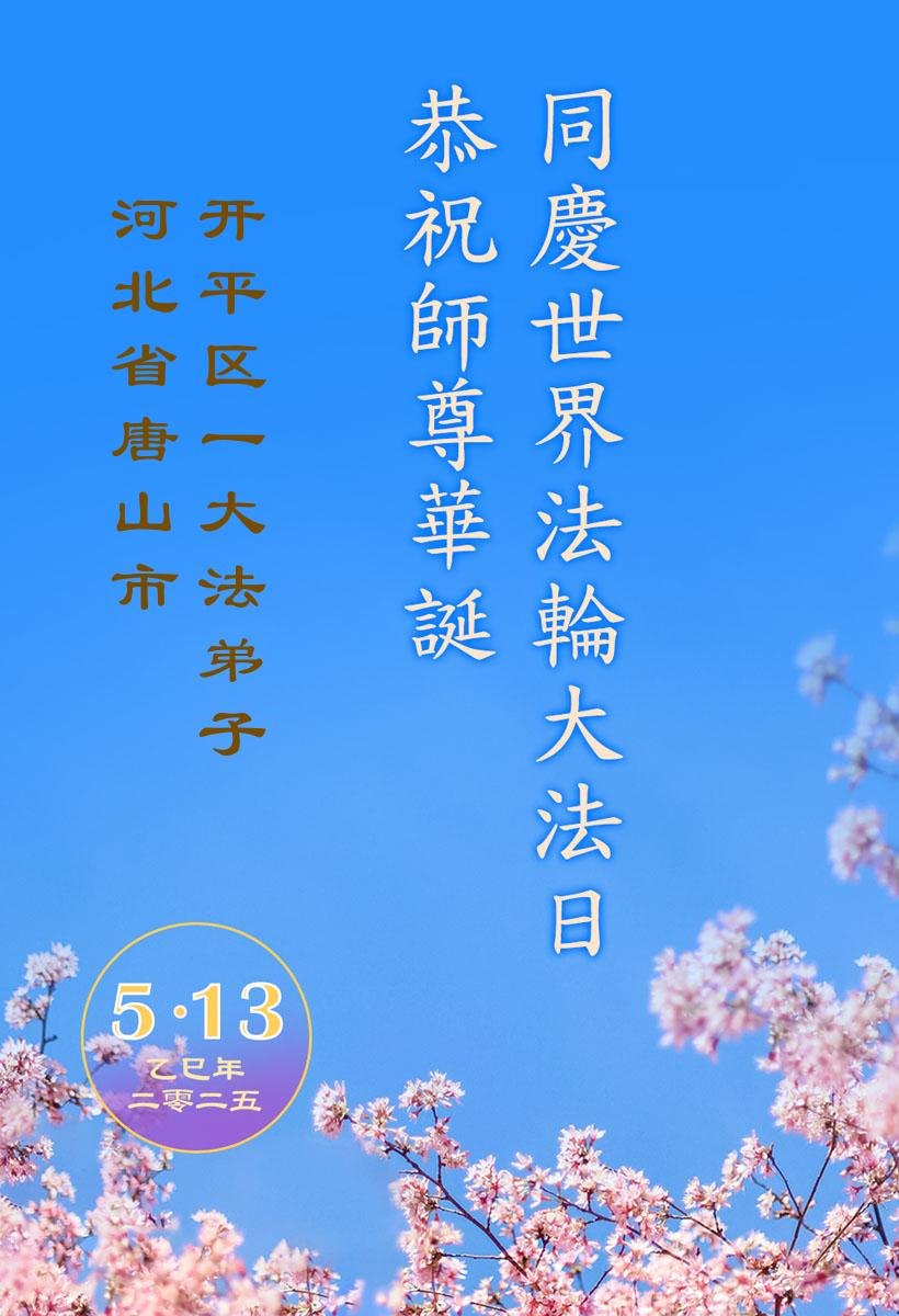 Falun Dafa Practitioners from Tangshan City Wish Revered Master a Happy Birthday and Celebrate World Falun Dafa Day!