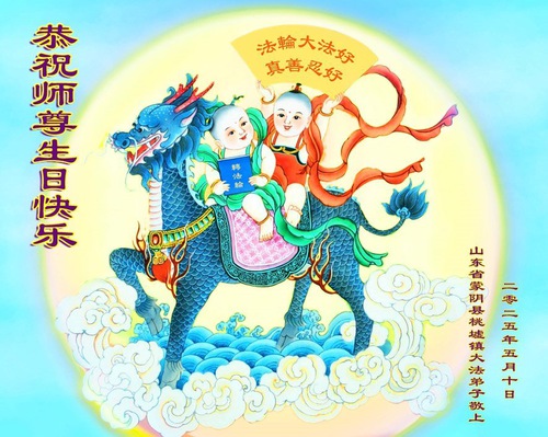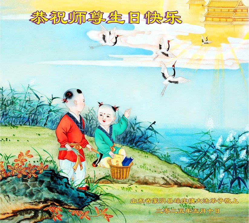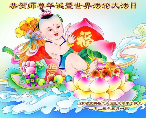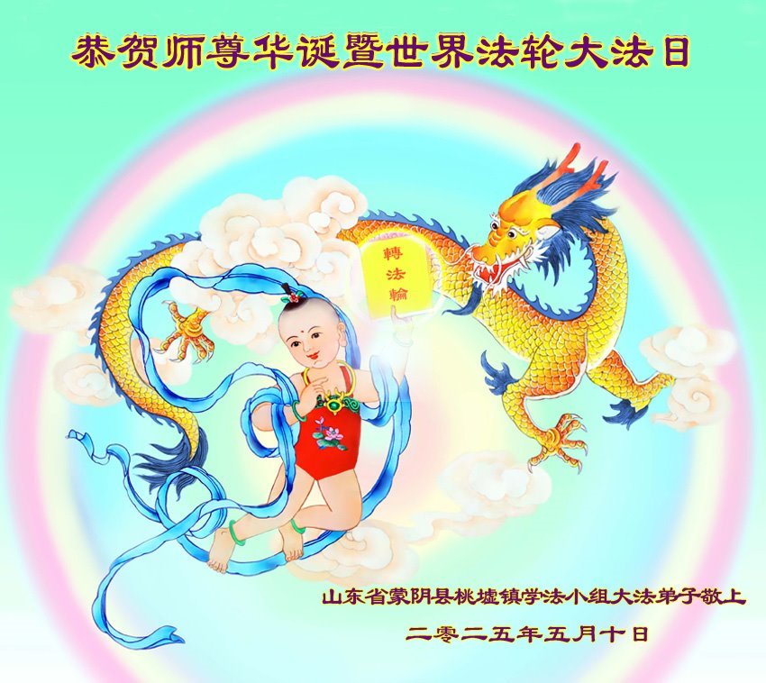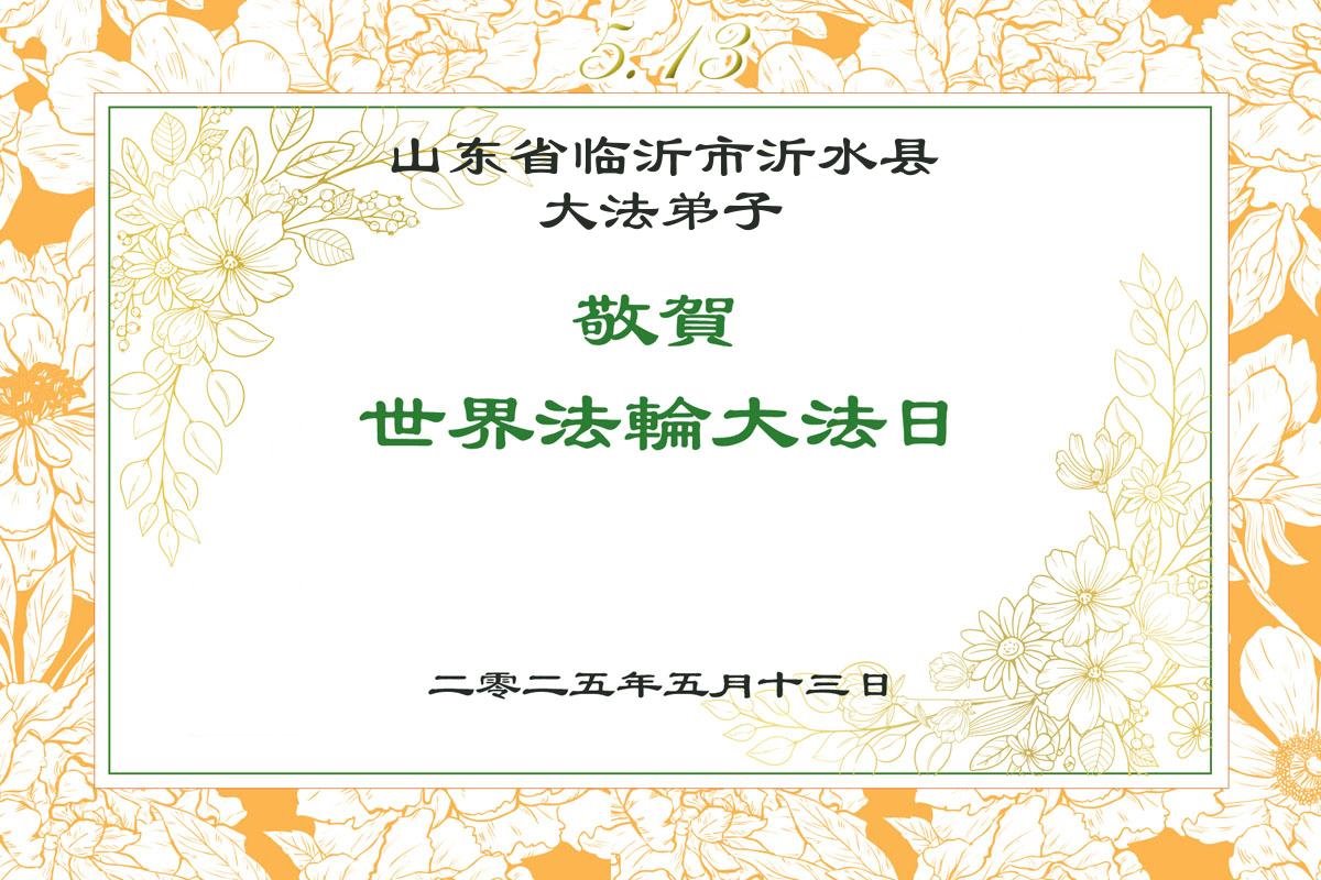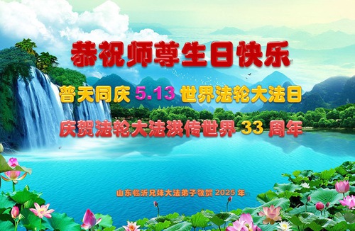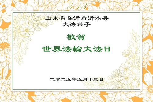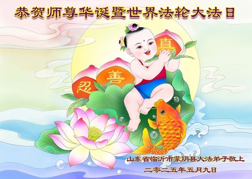 Falun Dafa Practitioners from Linyi City Wish Revered Master a Happy Birthday and Celebrate World Falun Dafa Day!