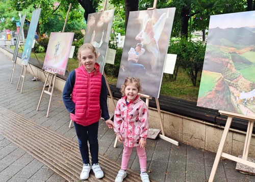 Girls from the Ukraine admired the paintings, listened attentively to the explanations, and wanted to take a photo as a souvenir with the exhibition.