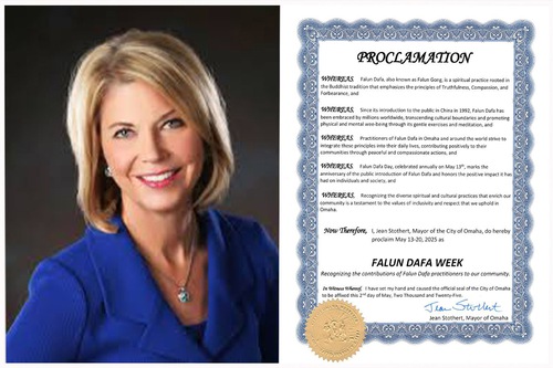 The Honorable Jean Stothert, mayor of Omaha, Nebraska, proclaimed May 13-20, 2025, “Falun Dafa Week.”