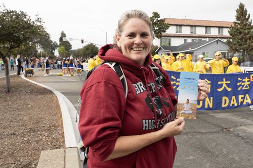 Vanessa, who works at the Sutter Health clinic, said, “My favorite group in the parade is Falun Gong because they are very peaceful, and watching them helped my tense body relax. They bring a positive, uplifting energy to people. Truthfulness, Compassion, Forbearance is wonderful, and we should live by these principles. I’m delighted to see you in the parade. You are great!”