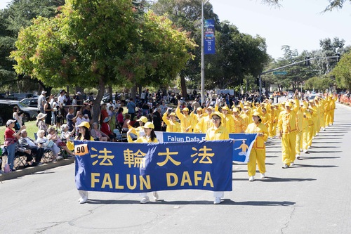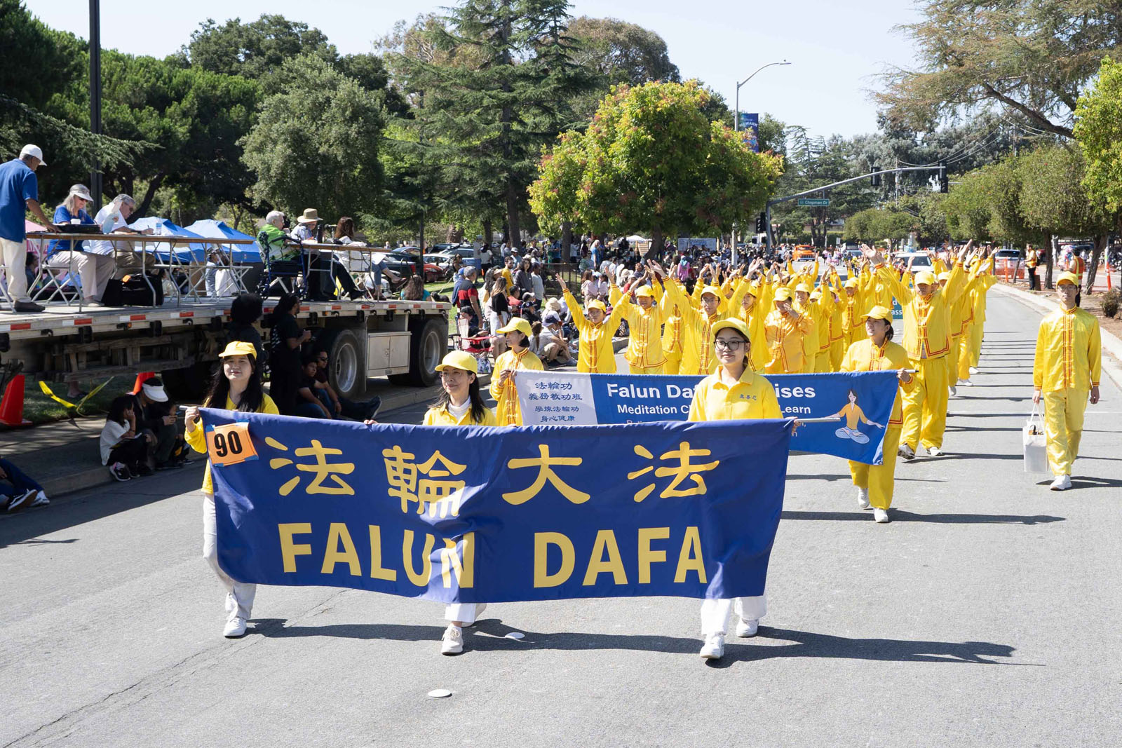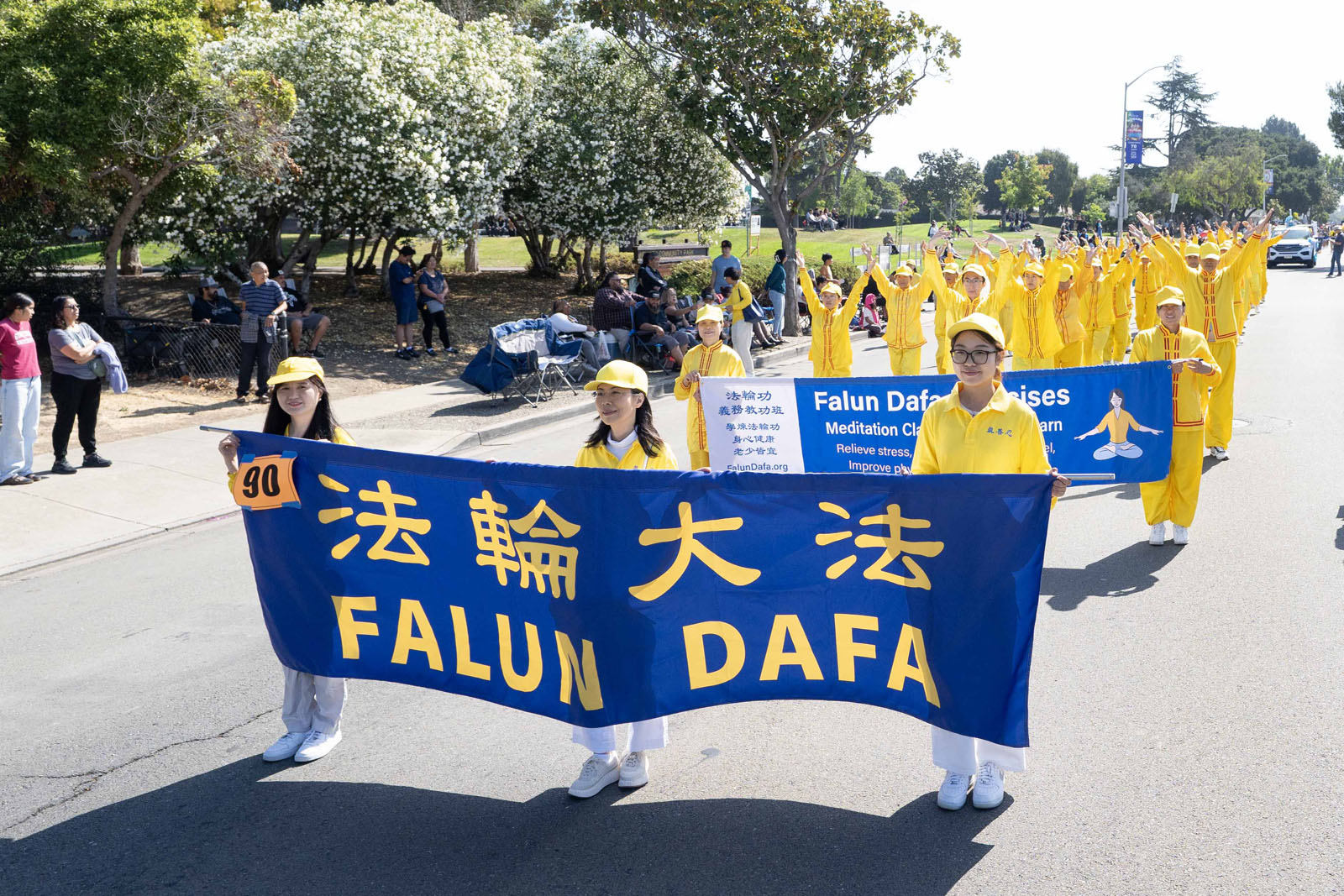 Falun Gong practitioners participate in the Newark Days parade on September 20, 2025, in Newark, California.
